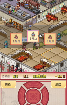 翻新:翻新可以提升食客人气,不同风格有不同效果,初始有三个风格古风长安、传统客栈、富丽宫阙,没进一个新地图多一个风格,基本上后续都比前面的好,有胡风石窟、清雅竹林、浓情异域,再之后的还没开。