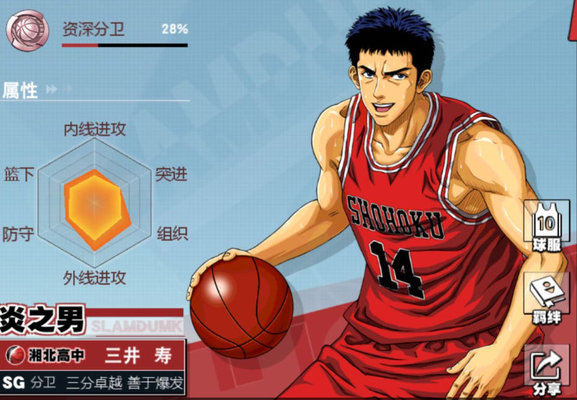 游戏中的三井投篮是真的准,但是在比赛时上分不一定好,这是为什么呢?那么三井应该怎么玩呢?小编在这里给大家分享下自己的心得,首先三井最好在外线,开局直接后仰接大,一般不会被盖到,3分就到手,再选两个相符的球员,配合直接无脑丢球就好了。