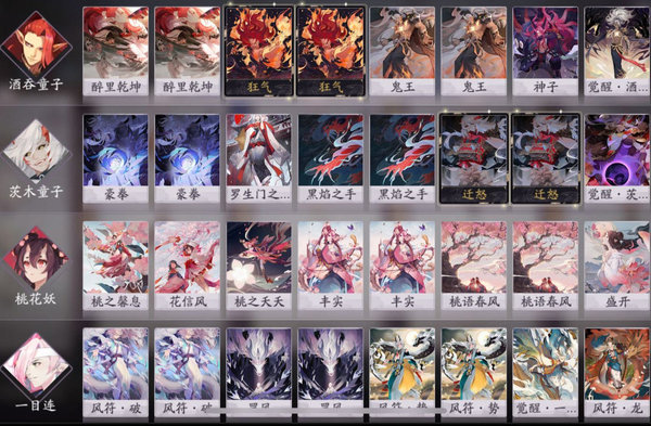 桃花妖桃之馨息带2张,苟命用,丰实带一张足以,前期回血用,桃雨春风带一张或者不带都可以,换成花信风也行,盛开2张,后期回血主要靠盛开,加攻击也多,觉醒带一张加不少奶,有就必带,桃花灼灼能让自己在一不小心翻车的情况下力挽狂澜,不至于重打一遍,没有的话换成桃雨春风或者花信风。
