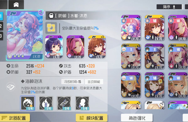 2、泳装沐恩,练度不足的时候boss的伤害还是很高的,泳装沐恩的护盾就是你保命的最佳选择。
