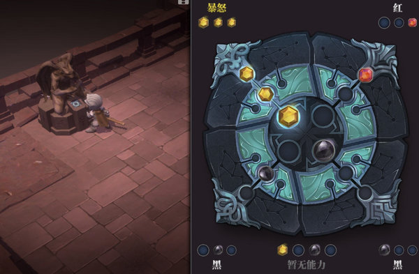 7、内圈两红两黑,生命50以上增加伤害,50以下减免伤害,好像是40%幅度。