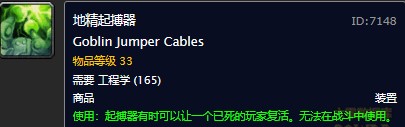 无法在战斗中使用,冷却时间是15分钟,一般都是猎人学工程带这个,可以施展出假死起搏器的绝活。