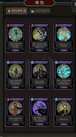所以卡牌中带有恐惧的牌都可拿,再利用复制装备,增加装备装备输出的祝福,从而达到输出效果。其余卡牌还是利用汲取过牌,保证生存。