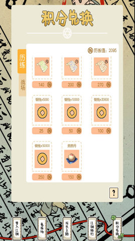 通过积累历练可以在积分兑换界面换取金币或者武学,零氪微氪玩家建议只换金币,武学主要靠娃游玩带回来。竞技场要注意每天有幸运数字,占一个幸运数字比一直往上爬要划算很多。