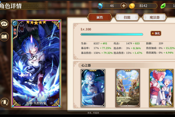 直接上魔导用浮空充能,这游戏最强充电宝,而且还能拐蕾姆的爆伤。