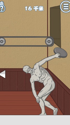 15、把铁饼拿走,再点击雕像的手,他会把你扔上去。